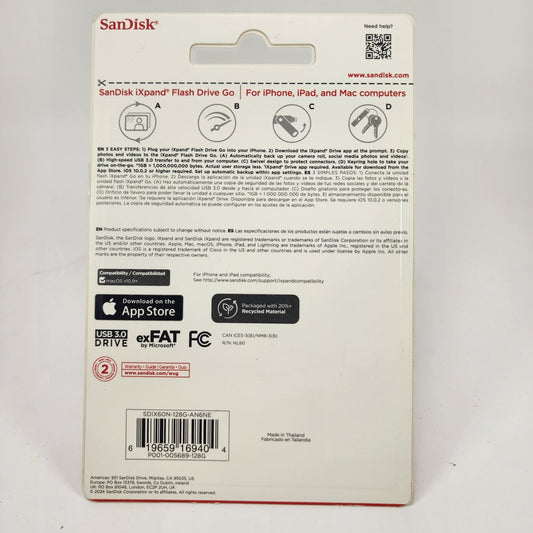 New Sandisk iXpand Flash Drive Go 128GB SDIX60N-128G-AN6NE
